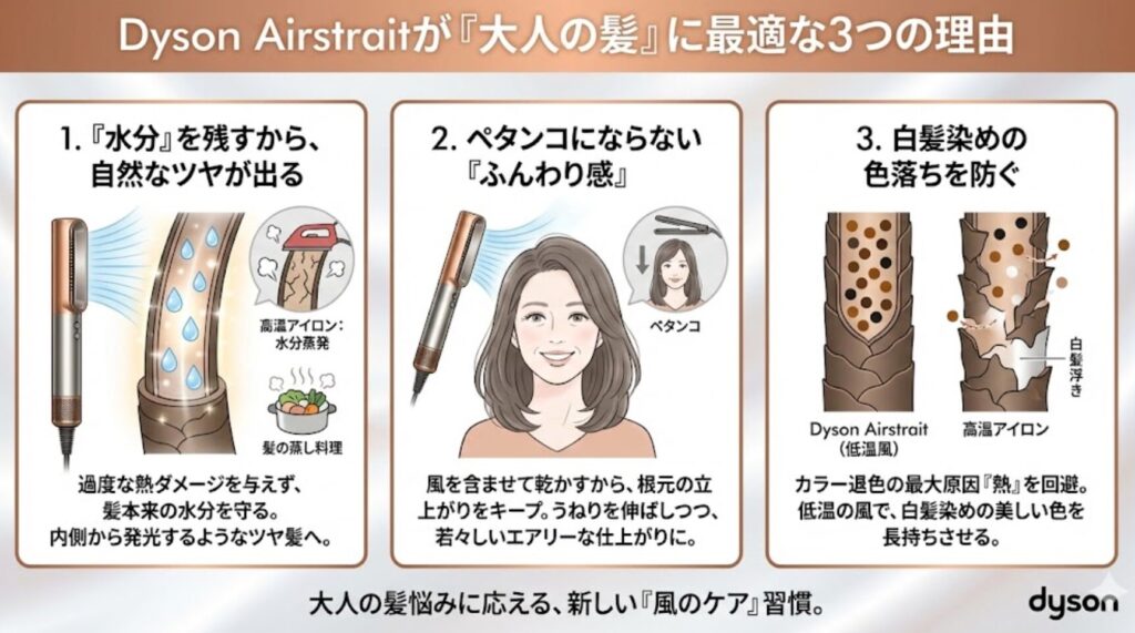 「これからの私」を美しく見せるために、そろそろ道具選びをアップデートしませんか? Dyson Airstraitの風が、あなたの髪に「品格」という名のツヤを取り戻してくれるはずです。