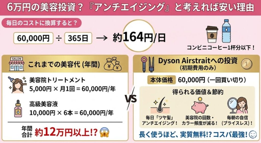 髪は毎日洗います。つまり、Dyson Airstraitは「毎日使えるアンチエイジング機器」です。