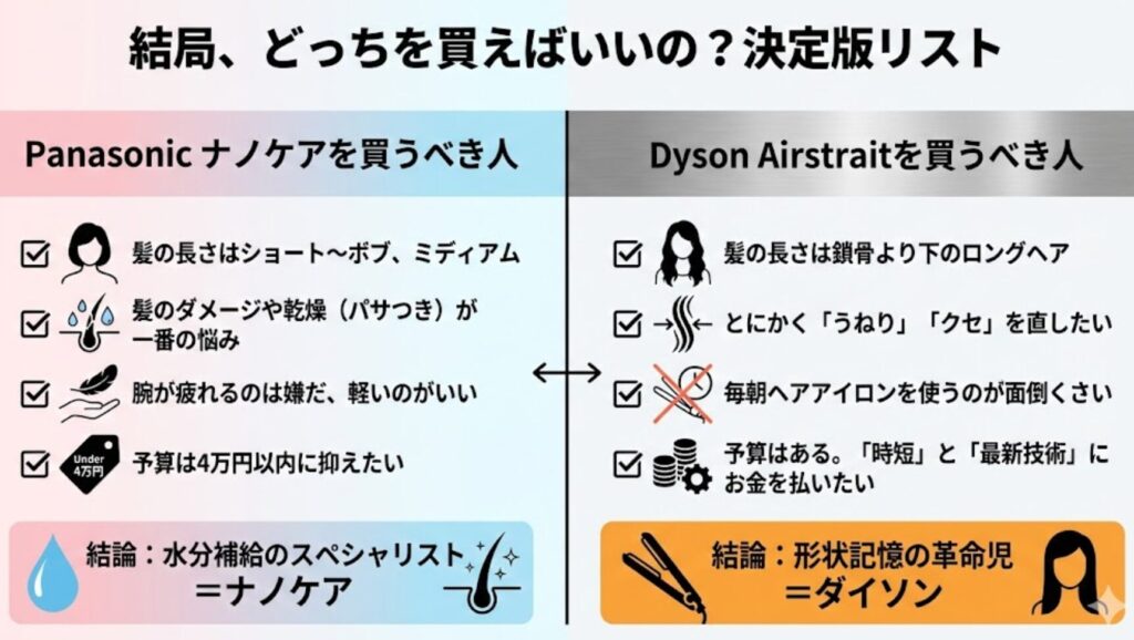 長くなったのでまとめます。あなたの「髪質」と「性格」に合わせて選んでください。