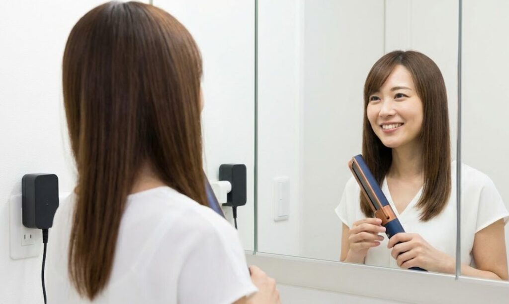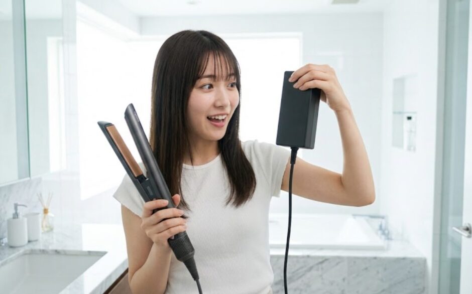 大前提として、ダイソン公式は「壁のコンセントに直接挿すこと」を強く推奨しています。理由は、エアストレートが最大1200Wという、ドライヤー並みのハイパワーを使う家電だからです。