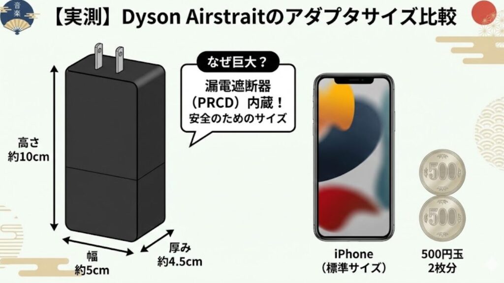 【実測】Dyson Airstraitのアダプタはどれくらい大きい?