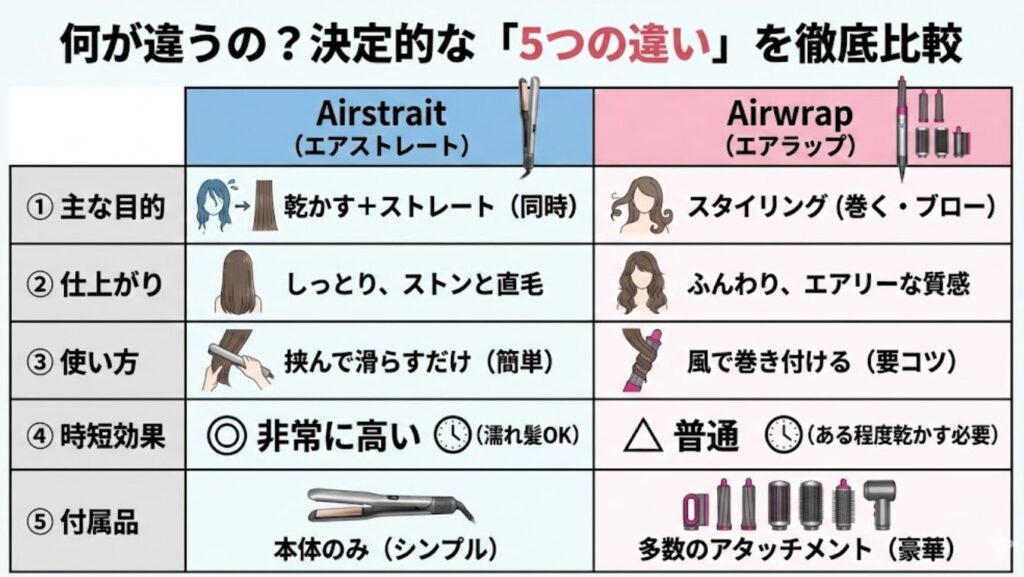 | 比較項目 | Airstrait (エアストレート) | Airwrap (エアラップ) |