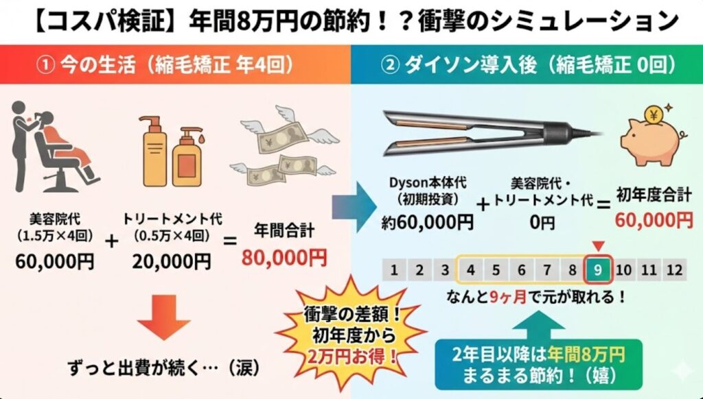 【検証】Dyson Airstraitがあれば「縮毛矯正」は卒業できる?年間コスパと仕上がりを徹底シミュレーション