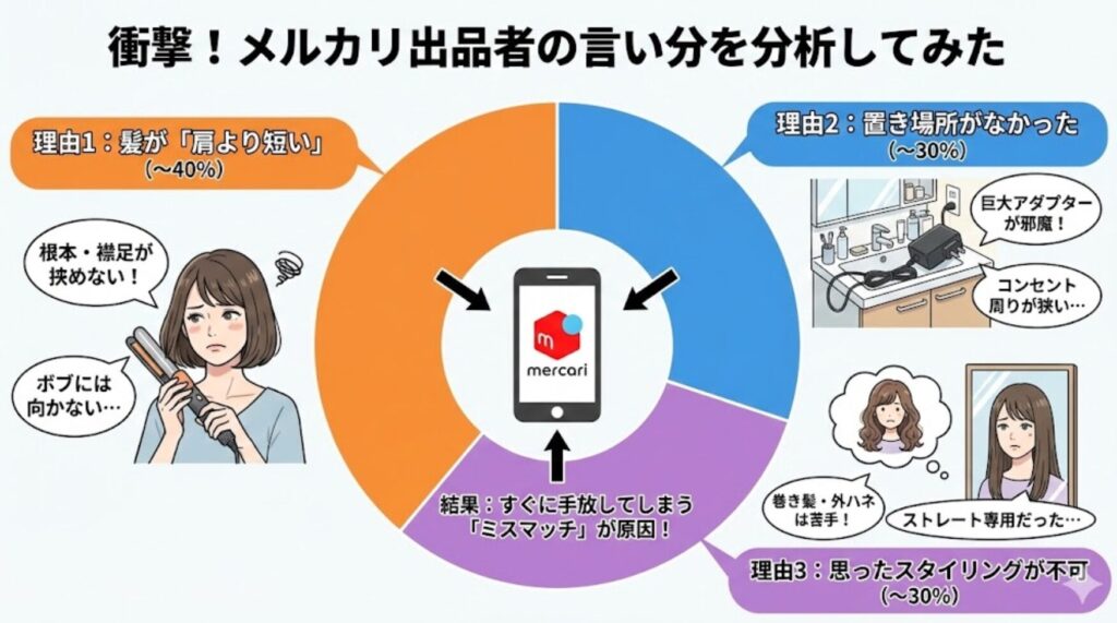 新品同様のAirstraitが、なぜ中古市場に出回るのか。 出品コメントに書かれている「手放す理由」をリサーチして分類すると、大きく分けて3つのパターンが見えてきました。